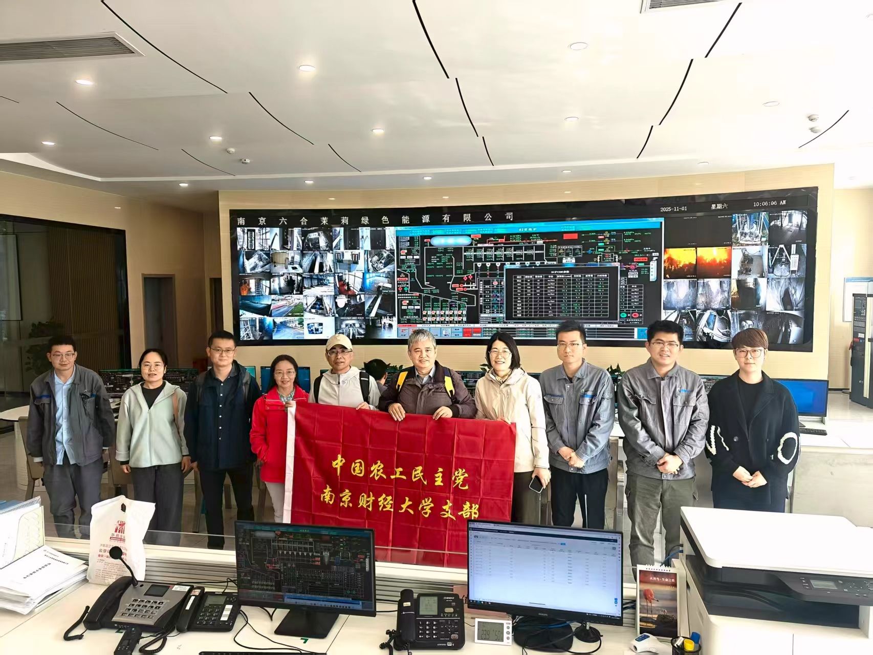 党员们首站来到位于六合程桥街道的南京六合茉莉绿色能源有限公司。在公司负责人引导下,大家参观了垃圾焚烧发电项目的核心区域,包括中央控制室、垃圾接收与贮存系统、垃圾焚烧热能转换系统及渗滤液处理系统等生产建筑。该公司项目作为南京市生态文明教育优秀基地,是推广环保理念与展示绿色科技的重要窗口。
