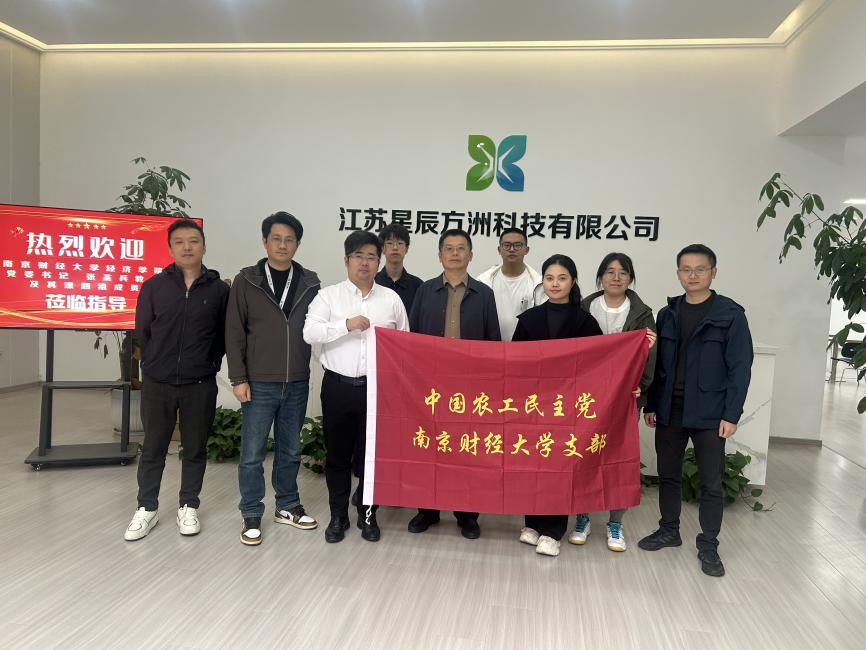 为深入贯彻落实国家乡村振兴战略,积极践行“把论文写在大地上”的时代要求,11月6日,农工党南财大支部赴江苏星辰方洲科技有限公司开展现代农业产业发展调研。农工党支部党员代表、经济学院师生代表参加调研活动。