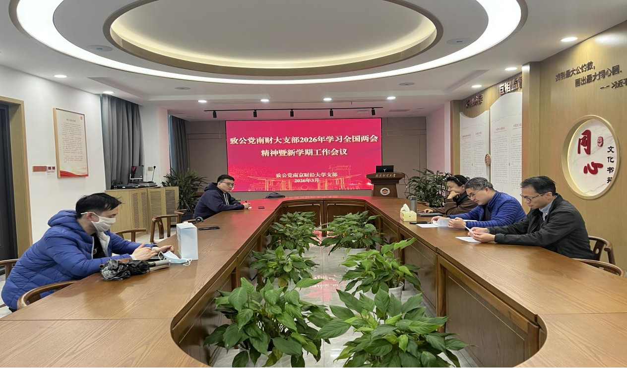 3月24日下午,校致公党支部在仙林校区同心文化书苑召开学习贯彻全国两会精神暨新学期工作会议。致公党南财支部班子成员及部分党员代表参加会议,会议由校致公党主委陆颖健教授主持。